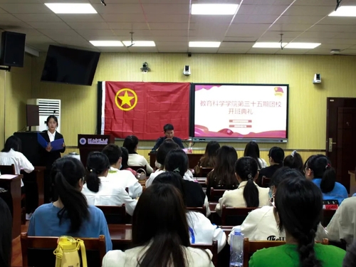 为加强团组织建设,进一步激励品学兼优的青年大学生,提高两院学生骨干的思想政治素质、政策理论水平、创新实践能力和组织协调能力,教育科学学院与生命科学学院于11月11号晚上在科技大楼9404联合举办了团校开班典礼暨第一讲。到场的嘉宾有校团委社会实践和志愿服务部部长姜诚,教育科学学院团总支书记王浩。参与活动的还有教育科学学院学生团总支副书记刘志红,张子玥、生命科学学院学生团总支副书记陈柳及两院组织部部长、组织部干事和各位团校成员。