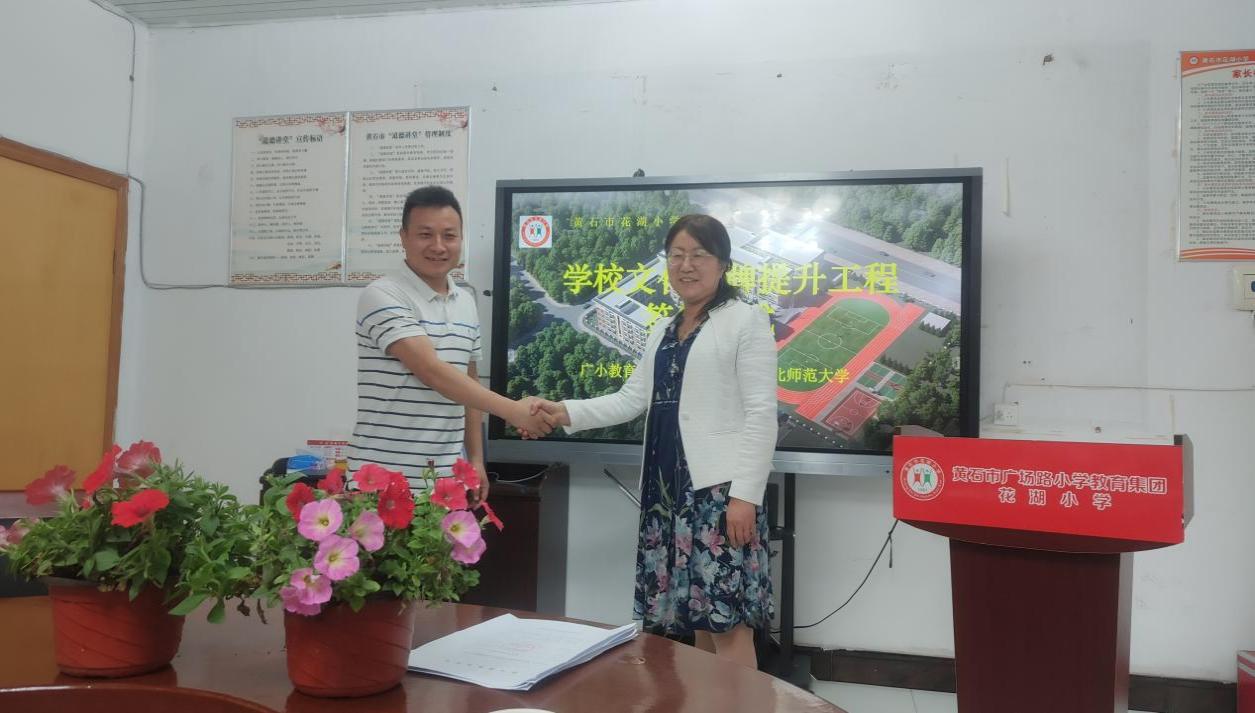 202259日,湖北ty8天游平台登录教师团队承担的 “花湖小学学校文化品牌提升工程”签约仪式在黄石市花湖小学会议室顺利举行。我院教师邓李梅、黄娅、胡天佑、柴霞、朱培芳,广场路小学教育集团总支书记陈敬涛、总校长冯钊,花湖小学党支部书记肖青花、校长唐金华和其他学校领导、中层干部参加了此次签约仪式。