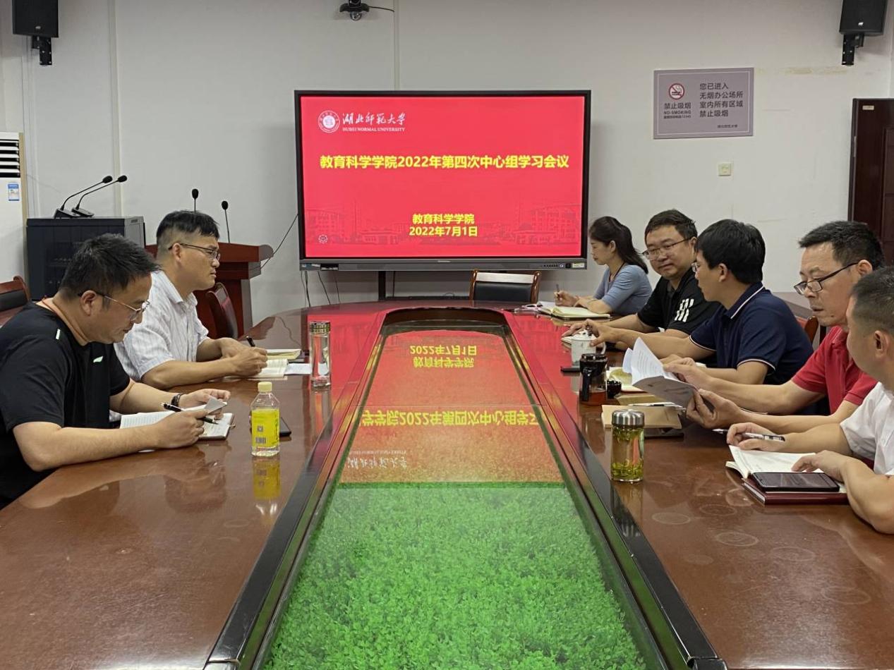 2022年7月1日下午,教科院党总支在教育大楼1317A召开理论学习中心组2022年第四次学习会议,集中学习了习近平总书记在湖北省武汉市和四川省考察时重要讲话精神、中国共产党湖北省第十二次代表大会会议精神等相关材料。会议由院党总支书记徐明波主持,学院全体班子成员和党政办主任参加了会议。