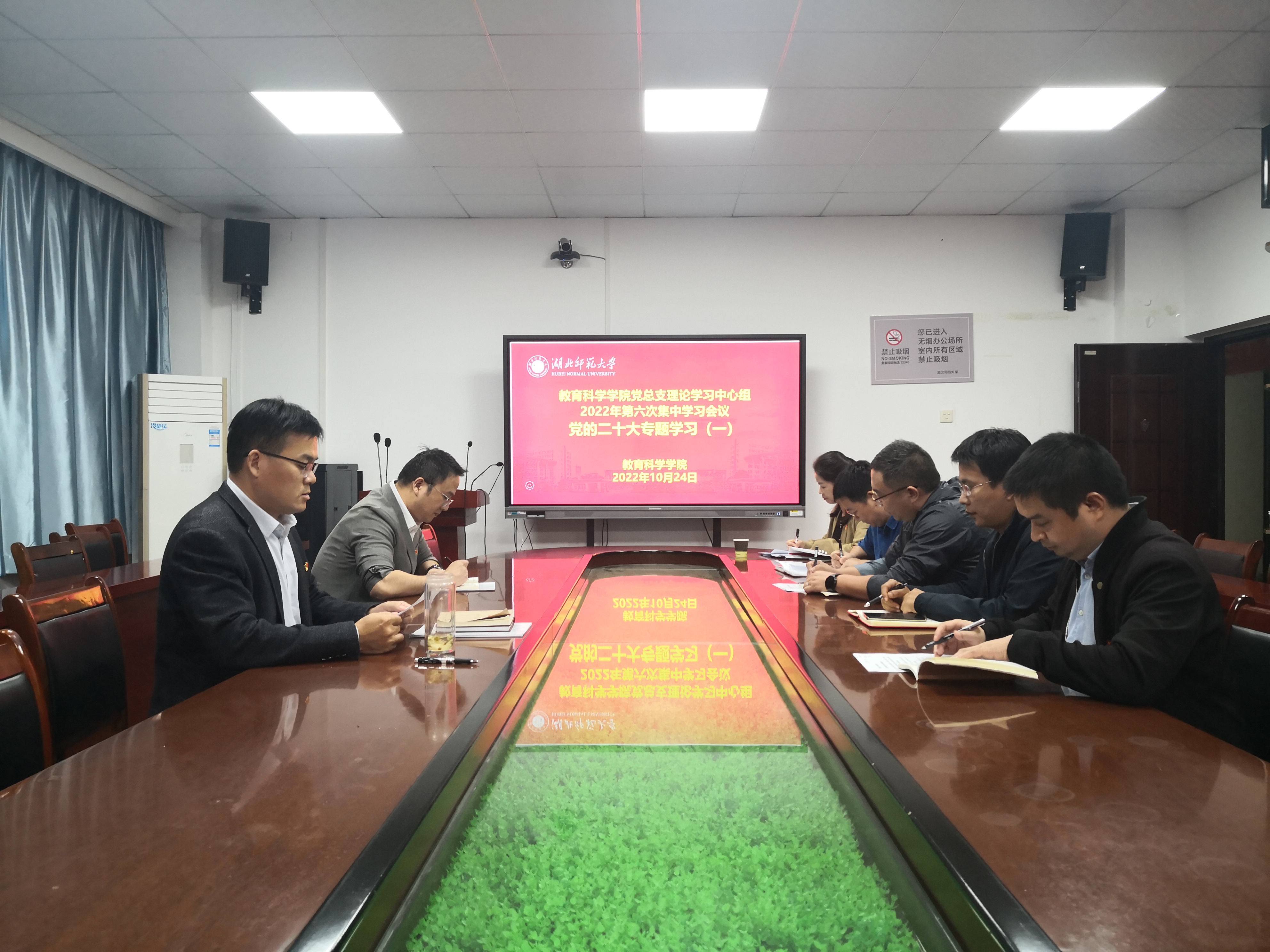 2022年10月24日下午,教科院党总支在教育大楼1317A会议室召开了理论学习中心组2022年第六次学习会议,专题学习中国共产党第二十次全国代表大会会议精神。会议由院党总支书记徐明波主持,学院党总支全体成员和党政办主任参加了会议。