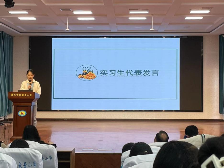 最后,张校长肯定了湖北师范大学与沈家营小学在教育、教学、教研领域中的合作共赢,并对实习生们提出期望和建议,希望实习生把握好实习机会,珍惜每一个锻炼教学技能的机会,正确看待教师职业,在现阶段明确职业追求,树立把教育作为终身事业的目标,真正实现“实践促成长”。
