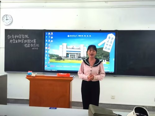 为了促进我校师范专业教育教学改革,提升师范生的综合教育素质和从师任教能力,培养更多更好的具有高尚师德、先进教学理念、扎实教学技能的优秀教师后备力量,教育科学学院于5月25日下午在教育大楼1201、1203、1206、1207、1208举办了师范生教学技能竞赛初赛。本次比赛分为即兴演讲、模拟授课和评委提问三个环节。教育科学学院徐燕敏、邹雪城、谭金凤和刘妍慧等老师出席并担任了此次活动的评委。