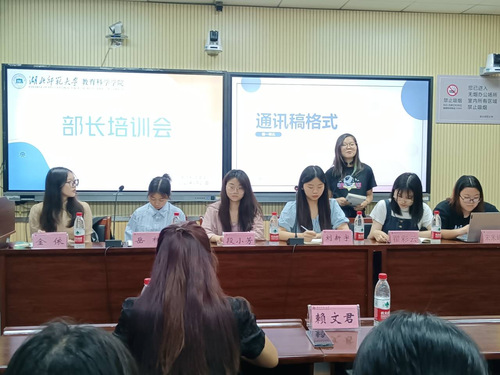 活动伊始,岳柳向新任学生干部们说明采购的具体流程,强调要提前告知学生会秘书部需要采购的物品详情,再上报给辅导员老师,经辅导员老师同意后进行统一购买,始终按规定流程进行。接着,前青媒部长赖文君和刘钰分别上台讲解了通讯稿与推文的格式要求,并列举了部分部门曾出现的错误来提醒各学生干部。随后,宋米岍玥详细地给新任学生干部们展示了如何使用到梦空间及怎样及时解决出现的问题。之后,团副主席团就本次会议内容对各部门学生干部进行提问,检验并强化了新任学生干部们对会议内容的认识与理解。最后,团副主席总结了本次会议的主要内容,并对新任学生干部寄予厚望。