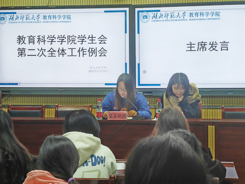 为了让学生会各部门新干事明确各自职责,更好地促进学生会工作的建设和开展,教育科学学院学生会于11月24日晚7:00在教育大楼1316举办了本学期学生会第二次全体工作会议。参加本次会议的有学生会主席宋米岍玥、翟彩云,以及各部门部长和新干事。