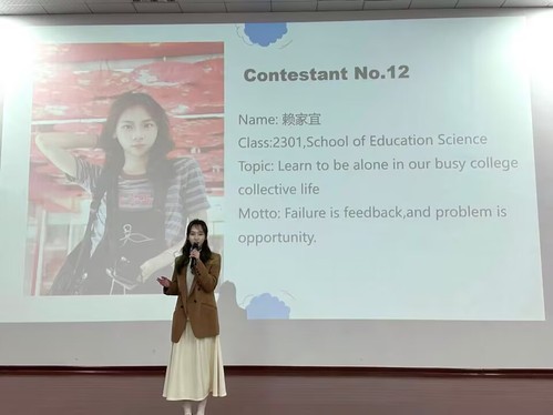 本次活动面向全校学生,经过预赛选拔出来的优秀选手们以饱满的精神状态和积极的态度精心准备比赛。在比赛过程中,选手们以流利的口语和英语应用能力展现了湖师学子积极向上的精神风貌。其中,教育科学学院赖家宜同学在演讲展示时表现突出,演讲发音清晰标准,获得评委老师的一致好评,以优秀的口语表达能力和高超的英语演讲技巧荣获本次比赛二等奖与最佳风采奖。