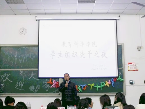 为了增强组织的凝聚力,帮助各部门成员互相了解,增进彼此之间的感情。教育科学学院学生会秘书部学生自律委员会秘书部于11月30日晚7:00在科技大楼9103联合举办第二十四届团委学生会和第三届学生自律委员会院干之夜活动,参加本次活动的有党委副书记刘广兵、辅导员秦姗姗、刘丽娟,团委副书记刘新宇、段小芳,学生会主席宋米岍玥、翟彩云,学生自律委员会主席金依、岳柳以及三大组织全体部长和干事。