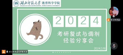 为进一步推进学风建设,增加同学们考研复试的信心,更好地帮助同学们应对准备复试过程中遇到的各种问题,了解考研面试、调剂等方面的注意事项,教育科学学院学生会学习部于2024年3月16日下午举办了考研复试与调剂经验分享会,并邀请了辅导员刘丽娟老师和三位成功上岸的学姐参加本次分享会。