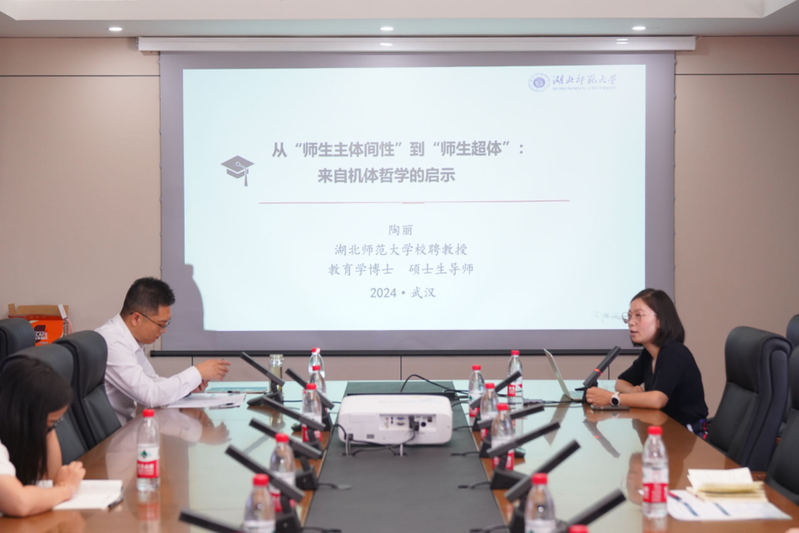 小学教育系陶丽副教授在“主体性教育新发展”圆桌论坛中做了题为“从‘师生主体间性’到‘师生超体’:来自机体哲学的启示”的主题分享。报告中指出,在师生关系本质这一问题上,无论是以主客体哲学为基础的个体性主体性教育理论和以主体间性哲学为基础的交往性主体性教育理论并未从根本上克服“实体思维”的局限,怀特海机体哲学在一定程度上能为超越实体思维,走向真正的内在关系提供一定的方法论启示。在机体哲学的观照下,师生关系应是师生有机体,师生有机体在主体范畴具体表现为“师生超体”,并就“师生超体”的内涵、特征及实现关键等进行了阐述。这一汇报引起了现场热烈的讨论,陶丽副教授就这一主题与参会学者进行了深入交流。