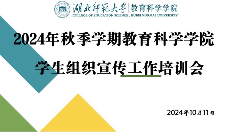 为增强学院学生组织负责人的宣传工作能力,保障宣传工作的良好进行,10月11日晚,教育科学学院于教育大楼1316A开展了2024年秋季学期教育科学学院学生组织宣传工作培训会。参加本次培训会的人员有湖北师范大学团委宣传部主要负责人王志强,负责人谭雅莉、胡颖,以及教育科学学院各部门宣传方面负责人,本次会议由教育科学学院团委学生副书记许广昊主持。