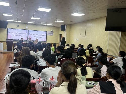 为助力见习干事了解各部门工作内容,增进组织内部的相互了解与沟通,教育科学学院于10月17日中午在教育大楼1316A召开了第四届学生自律委员会见习干事见面会。参加此次见面会的有辅导员夏青腾老师,以及学生自律委员会全体成员。