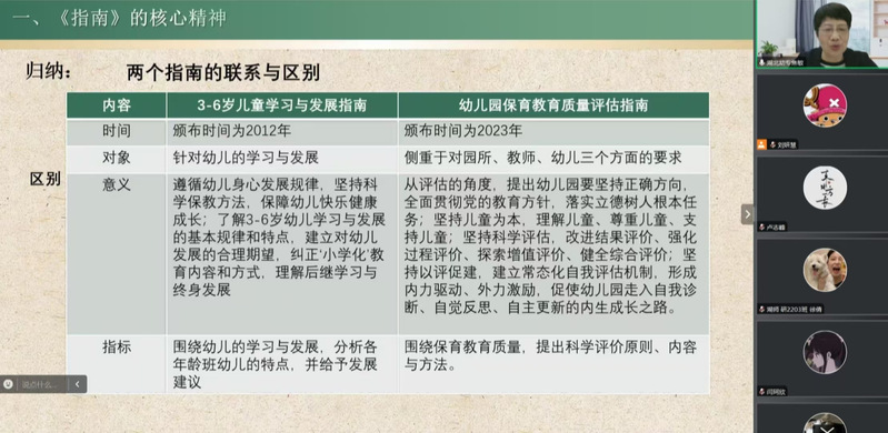 焦敏教授详细解读了《3-6岁儿童学习与发展指南》和《幼儿园保育教育质量评估指南》的精髓;接着,深入探讨了如何在这些核心精神的指引下,从儿童立场出发进行教育思考。焦敏教授通过一系列生动具体的案例,与大家共同探讨了学前教育的相关问题,分享了她在此领域的深入研究成果和丰富实践经验。