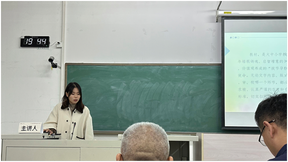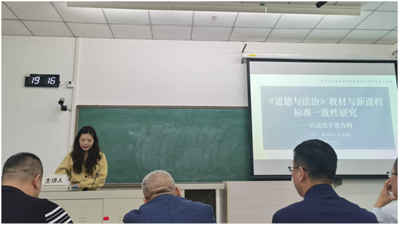研究生耿雨欣、赵蕾、刘洁如参加教科书研究生学术沙龙,分别以《初中〈道德与法治〉教科书人物插图的编排特点与教学建议》《高中思想政治教科书(必修)中的共产党形象梳理及教学策略》《〈道德与法治〉教材与新课程标准一致性研究——以法治专册为例》为题进行了发言汇报。