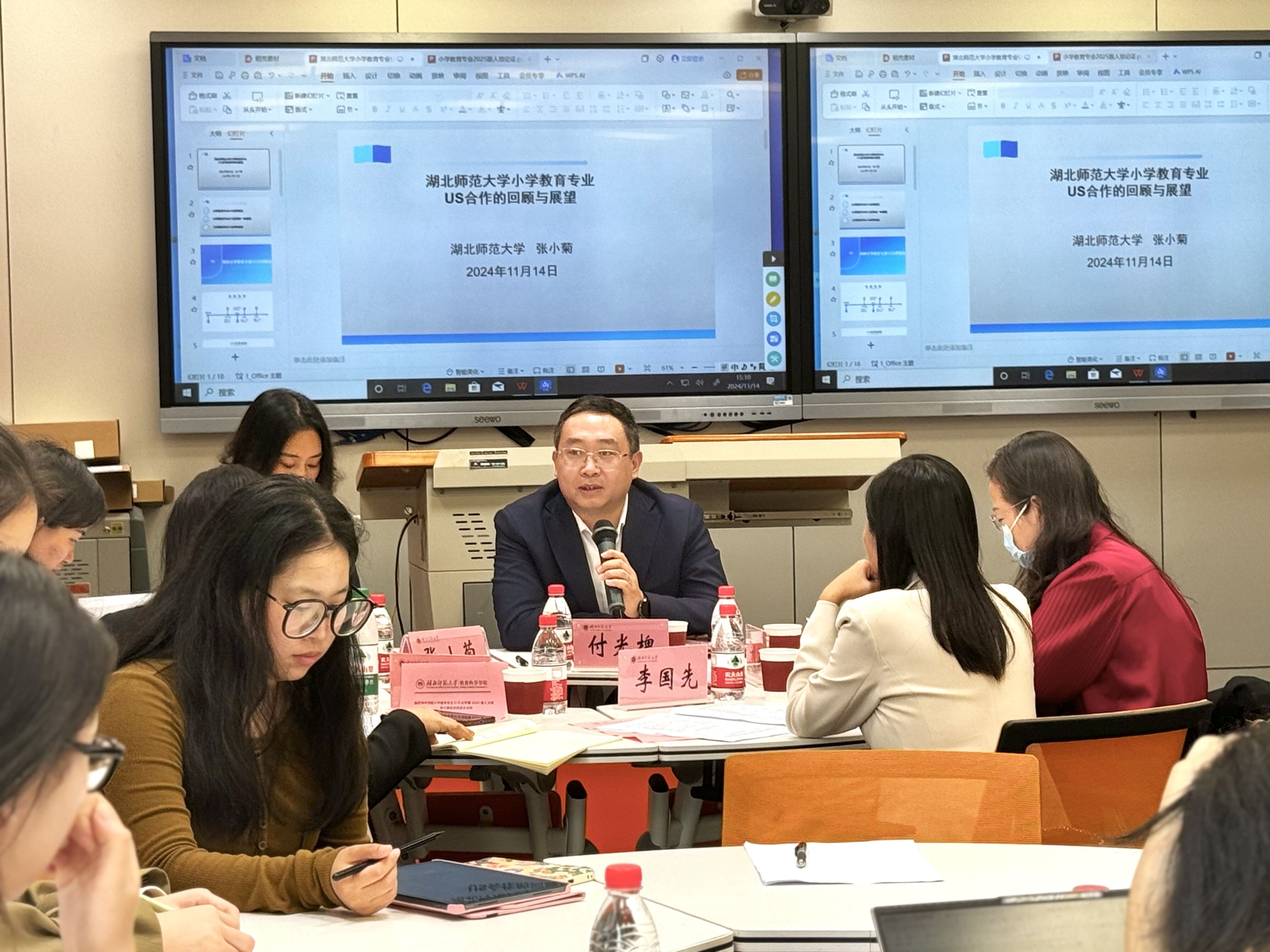 为了进一步深化U-S合作,提升专业内涵发展。11月14日下午,我院在教育大楼1408举办小学教育专业U-S合作研讨暨2025版人才培养方案论证会。院长朱浩,教务处副处长付光槐、副院长崔波、受邀小学校领导、小学教育系全体教师以及学生代表参加会议。会议分为两个阶段,第一阶段由副院长张小菊主持,第二阶段由小学教育系主任赵幸主持。