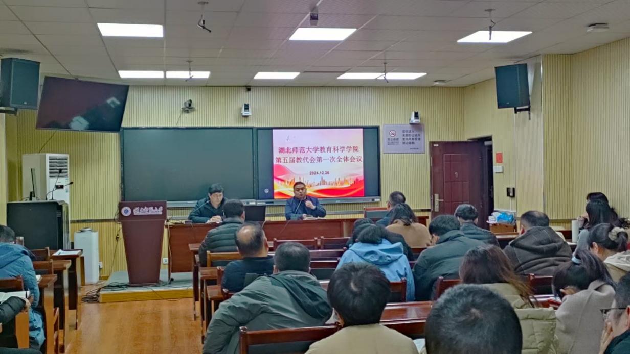 12月26日下午,教育科学学院第五届教代会第一次全体会议在1316A会议室举行,学院领导班子及全体教职工参加了会议。会议由学院党委书记杨志丹主持。