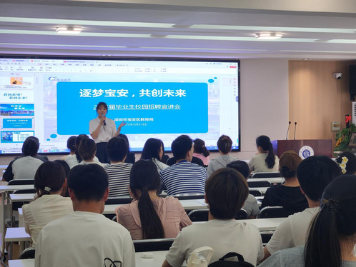 5月12日,深圳市宝安区幼儿教育管理中心携宝安区机关第二幼儿园、宝安区松岗街道中心幼儿园等单位来校开展宣讲活动。松岗街道中心幼儿园秦园长从区位优势、教育理念、工作模式、待遇保障等方面作了精彩介绍。随后两天,同学们通过笔试、面试展开激烈角逐,充分展现出毕业生的风采。