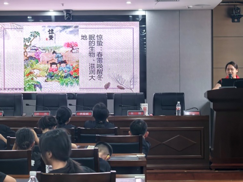 接下来,课程进入讲解环节。刘嘉琦围绕前十二个节气展开了具体讲解,从立春的万物复苏讲到夏至的骄阳似火,她结合生动的图片和通俗的语言,详细介绍了每个节气的由来、标志性物候和民间习俗,比如立春吃春卷、清明扫墓祭祖等,让孩子们了解到节气与生活的紧密联系。随后,志愿者吴珂萱接过讲解的接力棒,为孩子们介绍后十二个节气,从立秋的凉风送爽讲到大寒的冰天雪地,她着重强调了秋分的昼夜平分、冬至的数九寒天等特点,并穿插了“冬至吃饺子不冻耳朵”等趣味民俗故事,进一步加深了孩子们对节气的理解和记忆。
